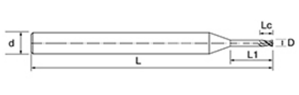 | Nem. | Átmérő D | Fuvola hossza Lc | Hatásos hossz L1 | Teljes hossz L | Shank Dia d | Pengeszám F |