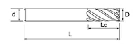| Nem. | Átmérő D | Fuvola hossza Lc | Hatásos hossz L1 | Teljes hossz L | Shank Dia d | Pengeszám F |