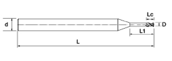 | Nem. | Átmérő D | Fuvola hossza Lc | Hatásos hossz L1 | Teljes hossz L | Shank Dia d | Pengeszám F |