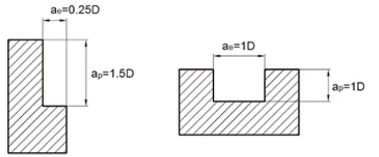 1. A fenti táblázat az oldalsó marás referenciaértékein alapul. A horonymarás forgácsolási feltételei a vágási sebesség 70%-án és az előtolás 50%-án alapulnak a fenti táblázatban.