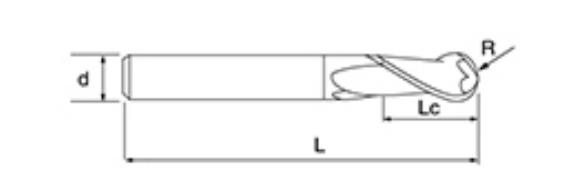| Nem. | Átmérő D | R Szög R | Fuvola hossza Lc | Teljes hossz L | Shank Dia d | Pengeszám F |