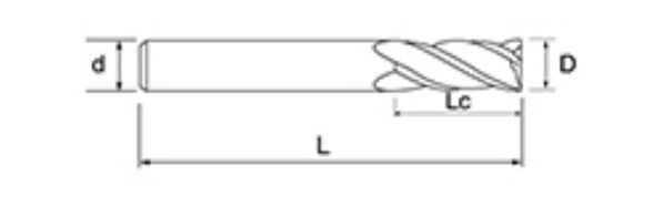 | Nem. | Átmérő D | Fuvola hossza Lc | Teljes hossz L | Shank Dia d | Pengeszám F |