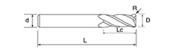 | Nem. | Átmérő D | R Szög R | Fuvola hossza Lc | Teljes hossz L | Shank Dia d | Pengeszám F |
