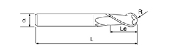 | Nem. | Átmérő D | R Szög R | Fuvola hossza Lc | Teljes hossz L | Shank Dia d | Pengeszám F |