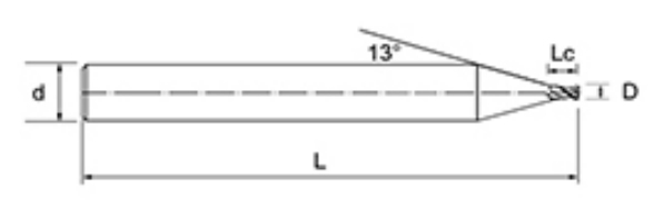 | Nem. | Átmérő D | R Szög R | Fuvola hossza Lc | Teljes hossz L | Shank Dia d | Pengeszám F |